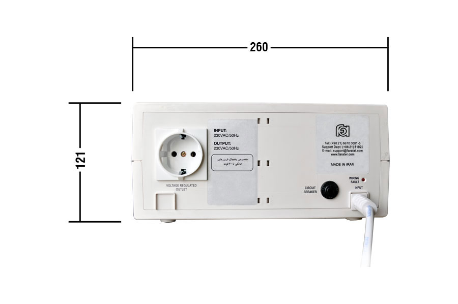 - خارج شدن ولتاژ ورودی از محدودهی 160~275 ولت (جهت جلوگیری از آسیب رسیدن به مصرفکننده)